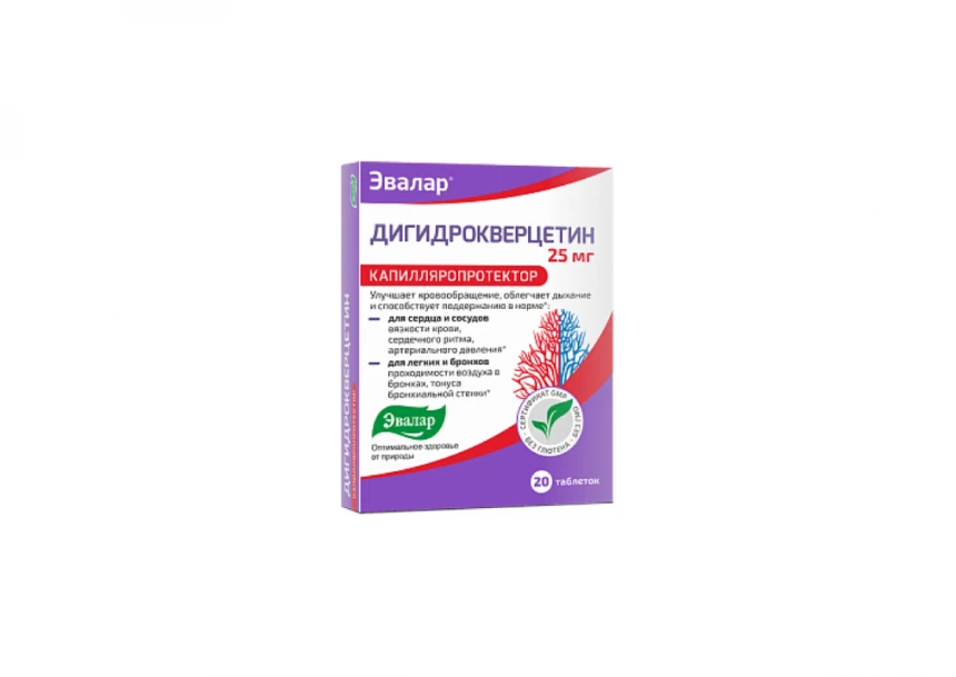 Dihidrokvercetin je dodatak ishrani namenjen odraslima, sa snažnim antioksidativnim dejstvom. Sadrži dihidrokvercetin – bioflavonoid izolovan iz kore sibirskog ariša, poznat po povoljnom uticaju na krvne sudove, kapilare i cirkulaciju.