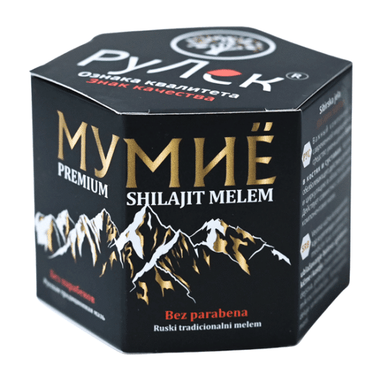 MUMIO MELEM (Shilajit) je ruski biljni melem izrađen po tradicionalnoj recepturi, na bazi altajskog mumia – prirodnog organsko-mineralnog kompleksa koji se u tradicionalnoj medicini koristi više hiljada godina. Receptura je obogaćena biljnim uljima i ekstraktima koji deluju sinergijski i doprinose regeneraciji kože, mišića, zglobova i vezivnog tkiva.