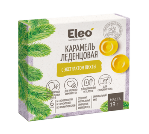 Tvrde bombone „Eleo“ sa ekstraktom sibirske jele predstavljaju aromatičnu kombinaciju biljnih sastojaka namenjenu osveženju i podršci organizmu. Zahvaljujući ekstraktu sibirske jele i dodatku melise, pružaju prijatan, osvežavajući ukus i osećaj svežine.